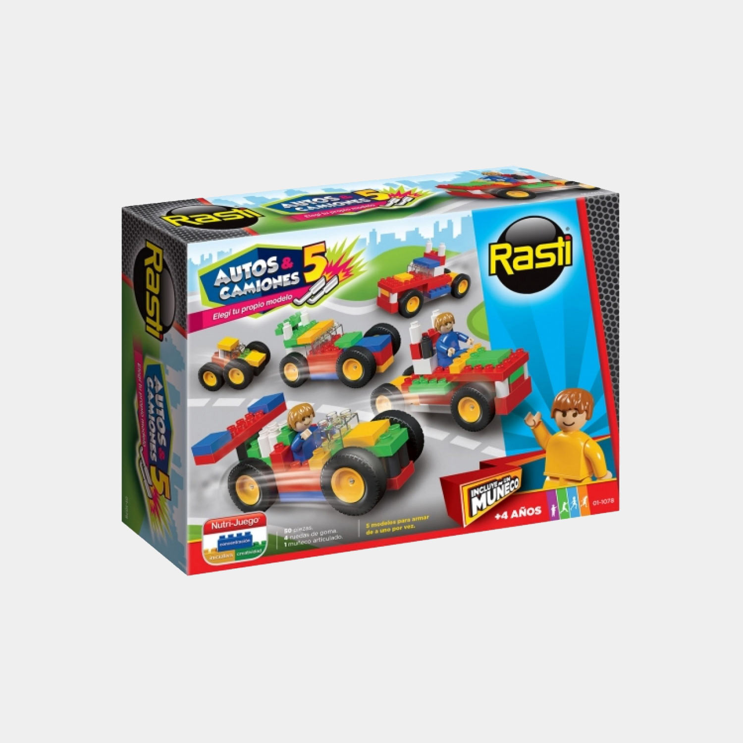 Ladrillos Rasti Autos y Camiones 50 piezas con Accesorios y 1 Muñeco